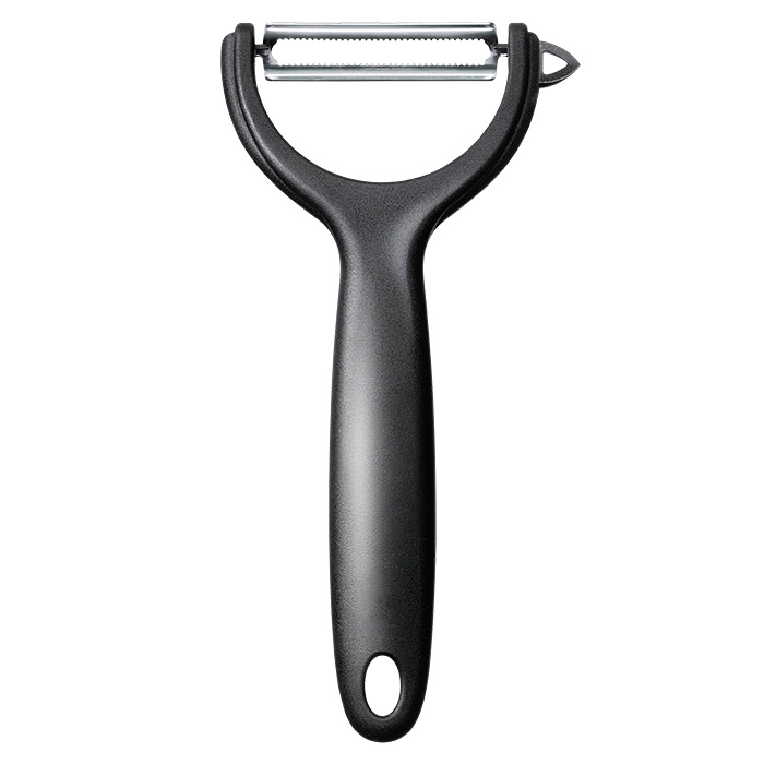 Нож имеет выгнутое лезвие, поэтому им удобно чистить круглые и овальные продукты. Лезвие повторяет изгибы, и срез получается ровным без лишних усилий.