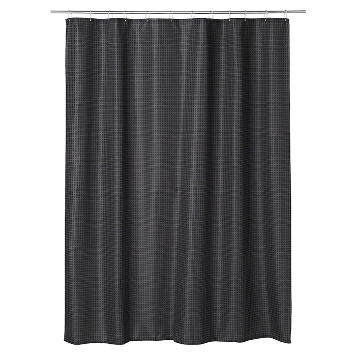 Водоотталкивающая пропитка препятствует намоканию, а специальная утяжеляющая полоска в нижней части занавески предотвращает сминание изделия. Такая шторка надежно защитит ванную комнату от брызг.